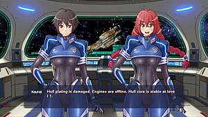 big tits bouncing in yacht cabin during fmf sex with milf anime