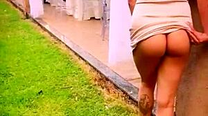 Wife Surprises With Hot Red Lingerie! Petite Tanned Brunette Flashes Ass In Public Outdoor Fun