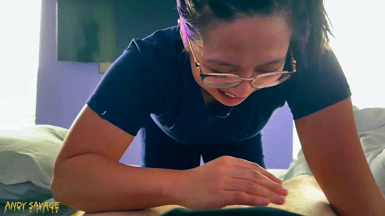 asian milf nurse titty fucks for cumshot