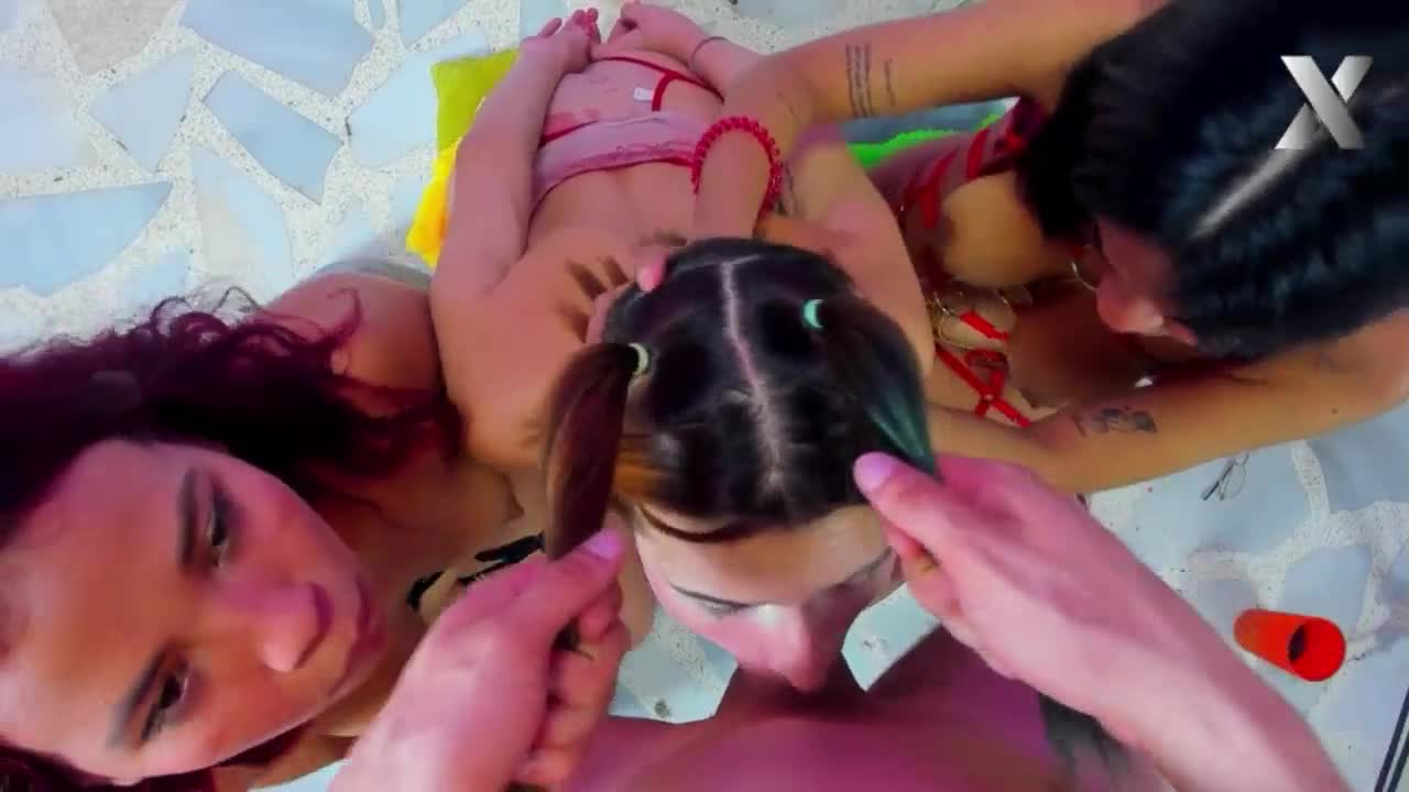Face Fuck Tour - Interracial Latina Honeys Dominate in FFM Throat Action