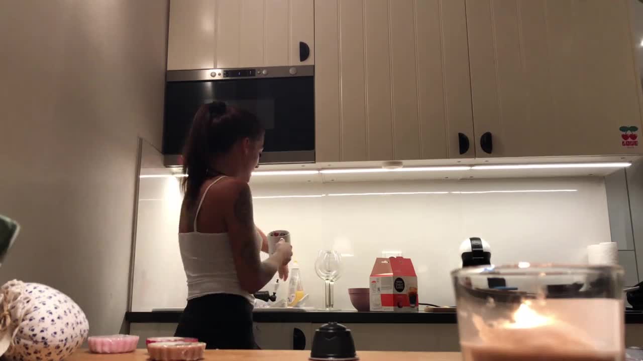sweet ginger teen cooking naked in the kitchen voyeur style