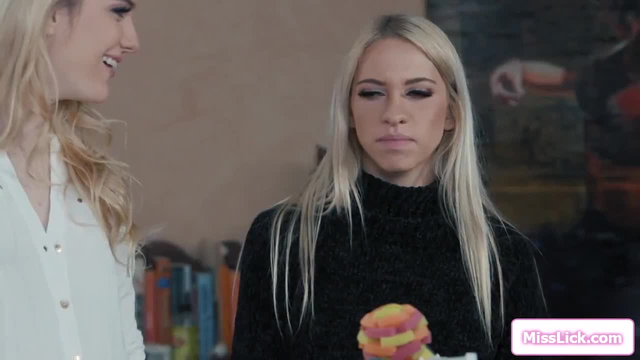 Blonde lesbian orgasms from big tits face sitting