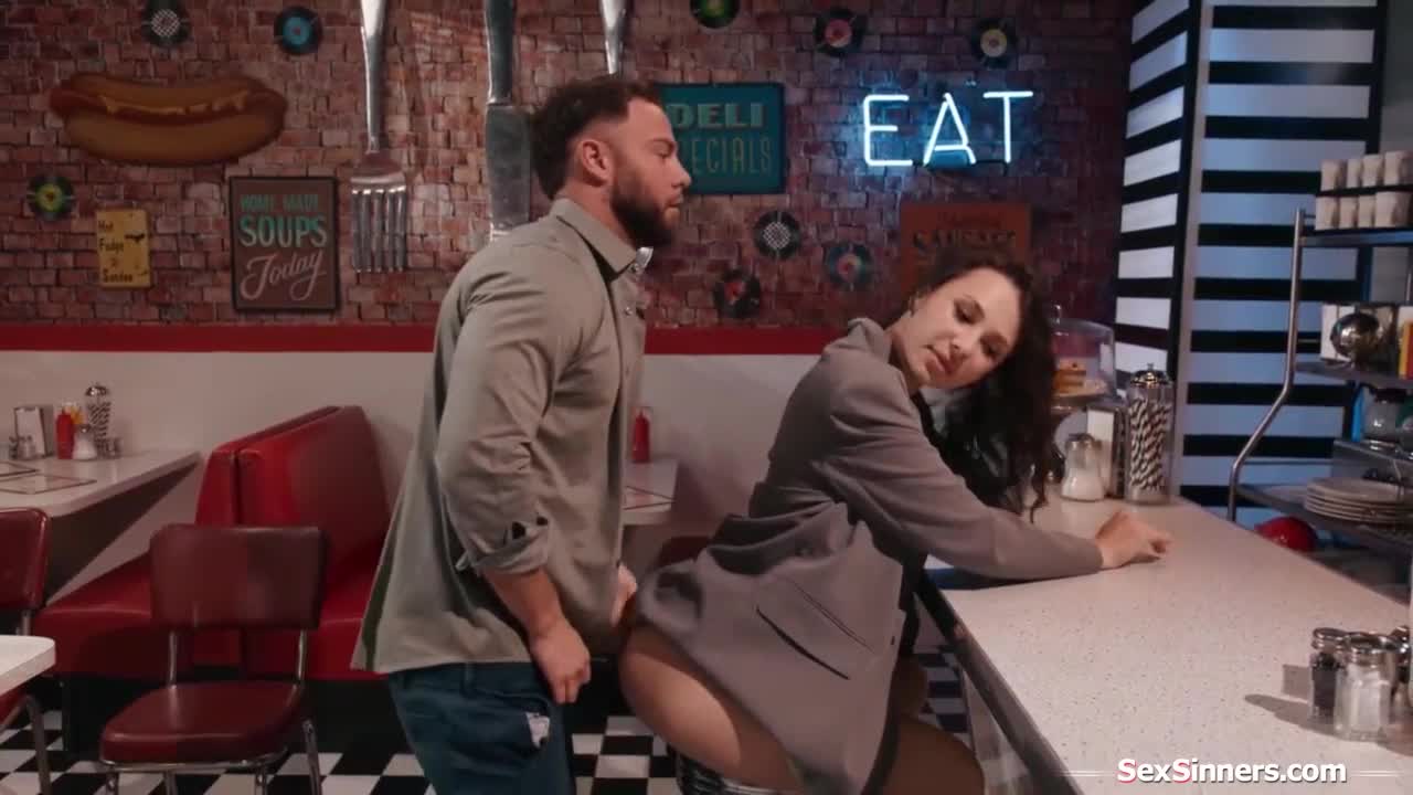 Sex-crazed teen Amia Miley gets banged rough in a public shop threesome! 😈