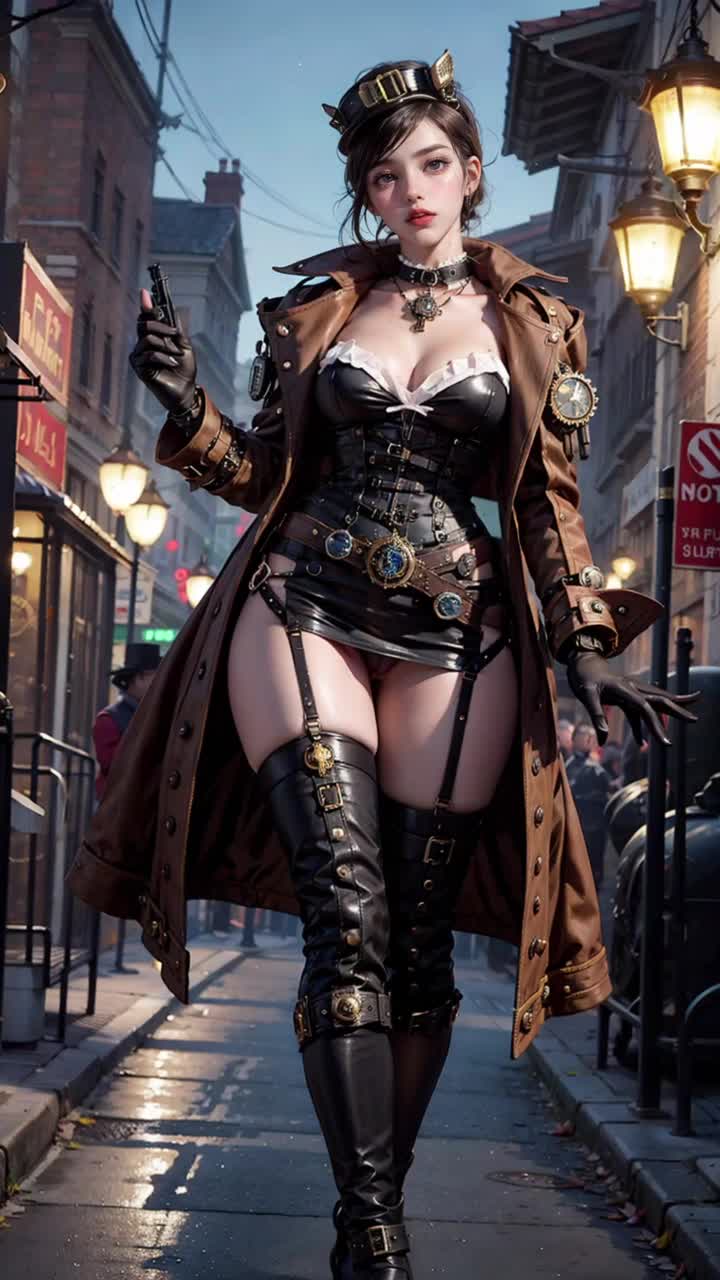 AI生成的巨乳美女在公共闪现中脱维多利亚式连衣裙