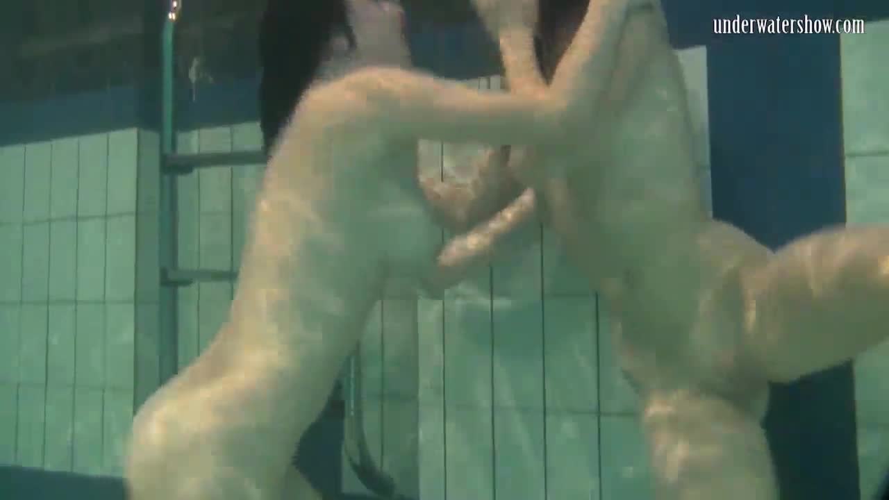 Two sexy lesbians tease underwater in the pool at beach