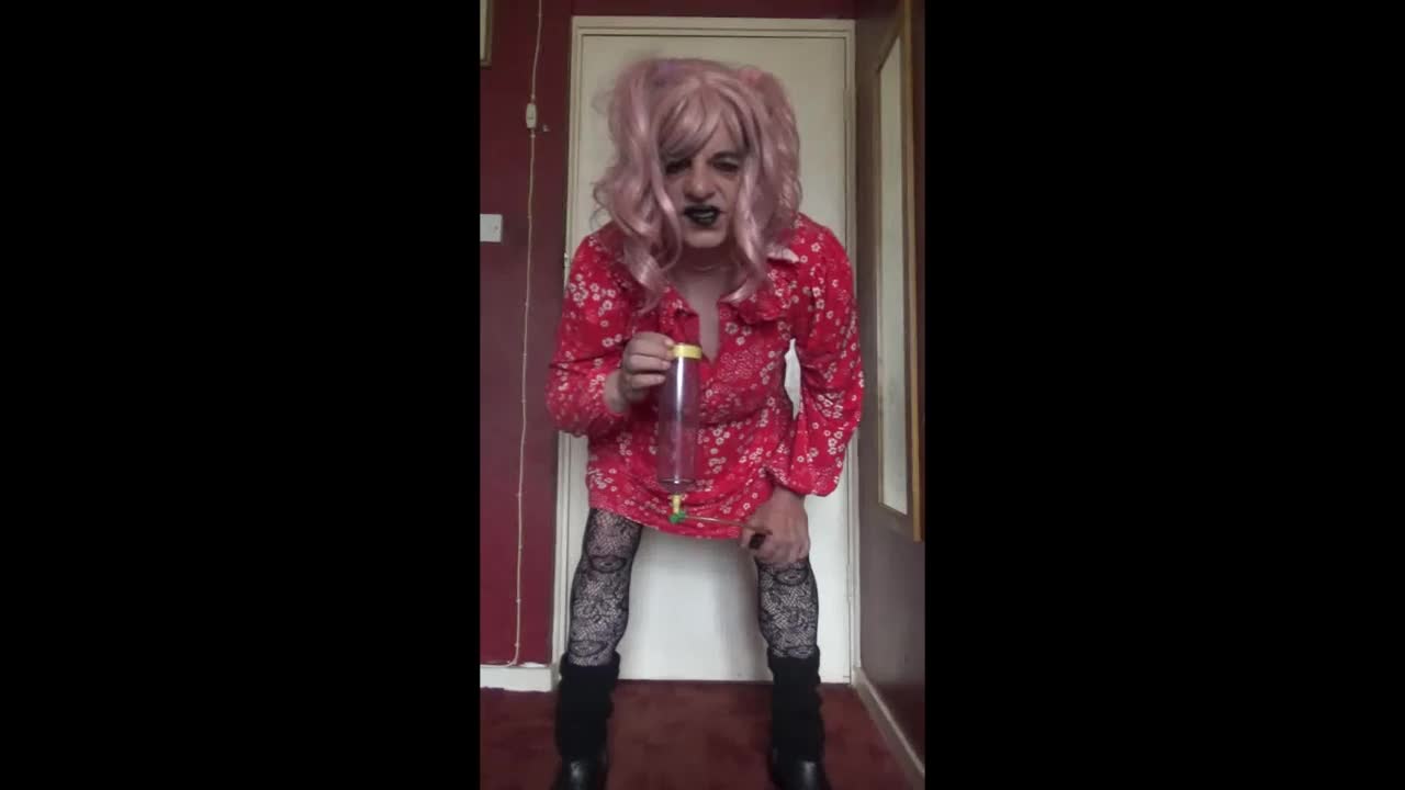 Sissy bisexual male exposed naked while peeing and swallowing
