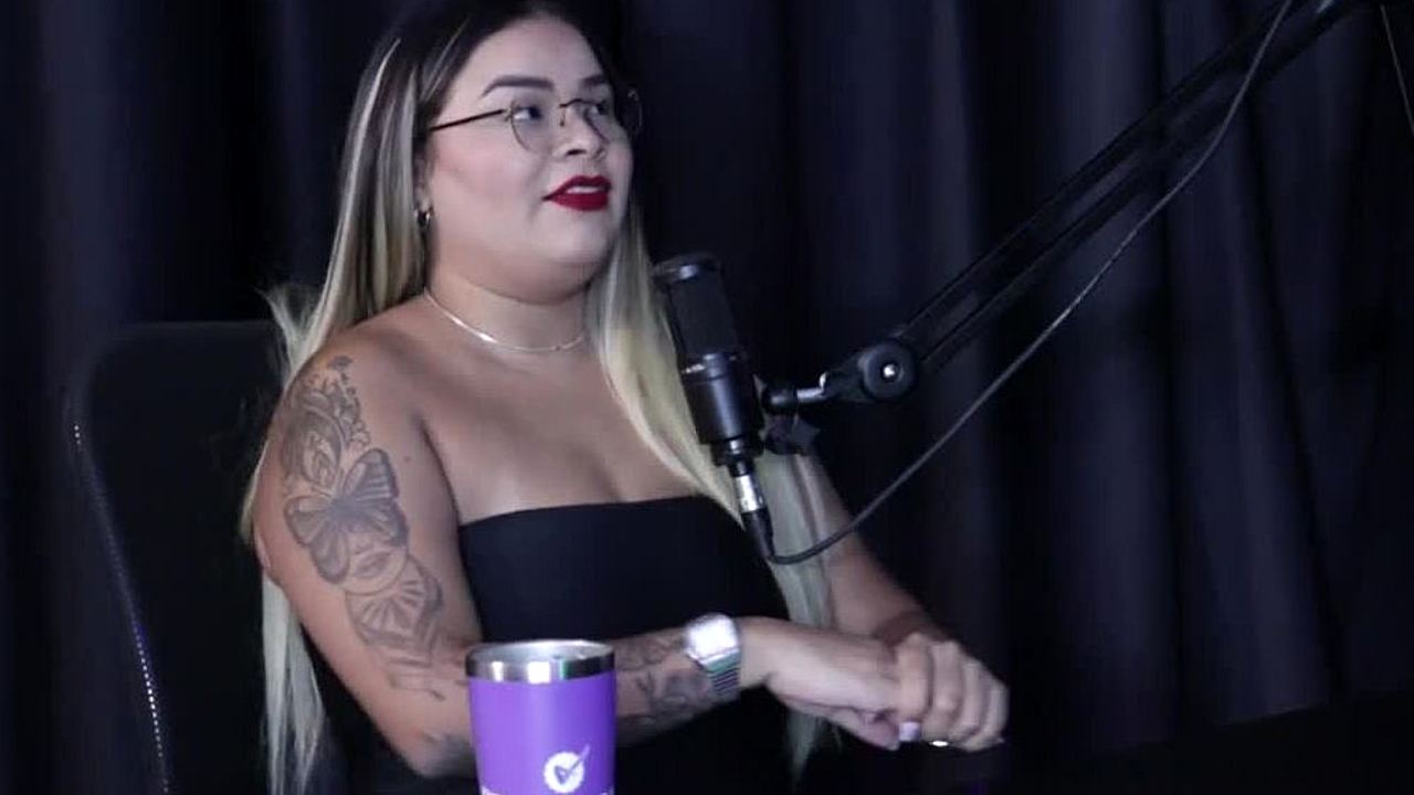 evelyn buarque teases in sheer red on preliminares podcast with bia hot