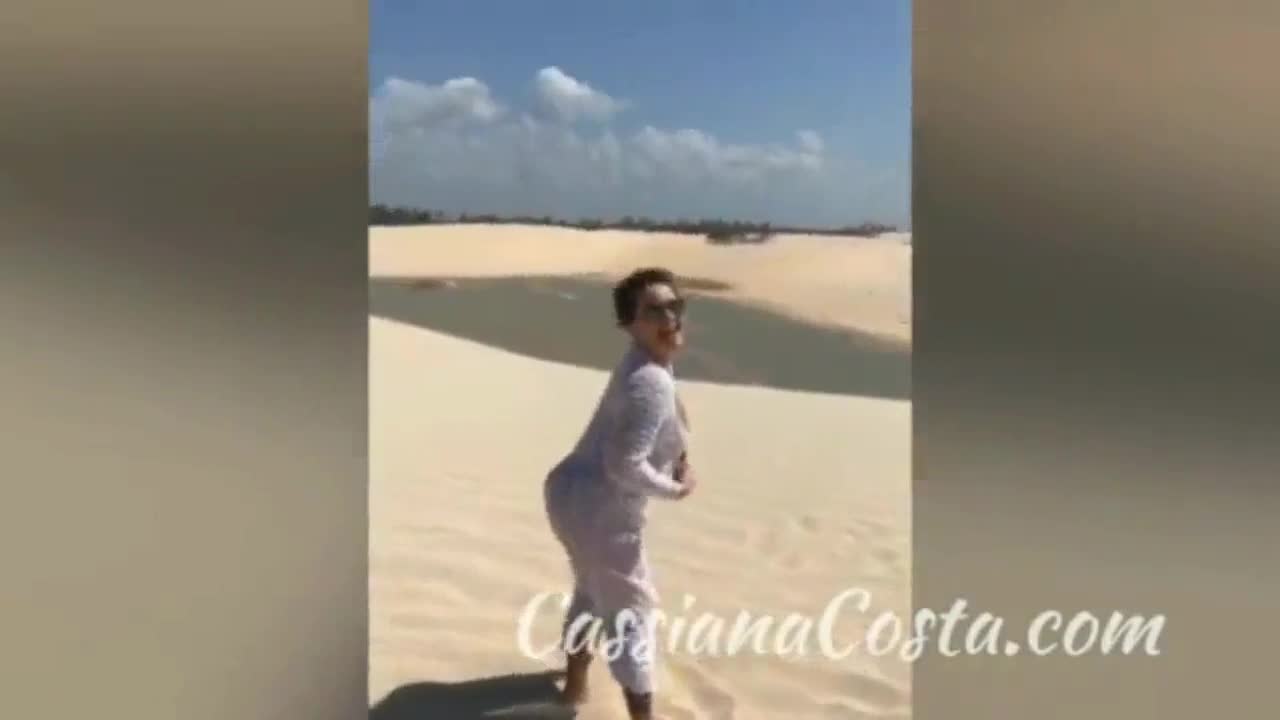 Belinha baracho de quatro na mesa do podcast mostrando rabão com detalhes ruan se aproveita